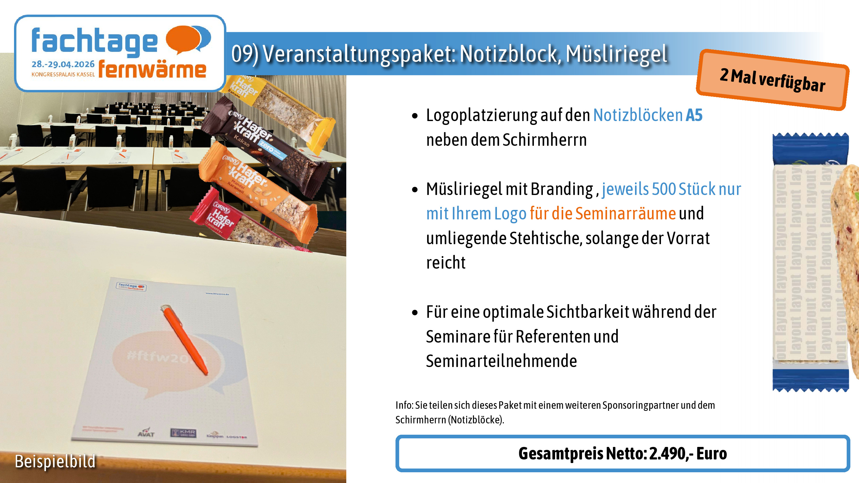 09) Veranstaltungspaket: Notizblock und Müsliriegel