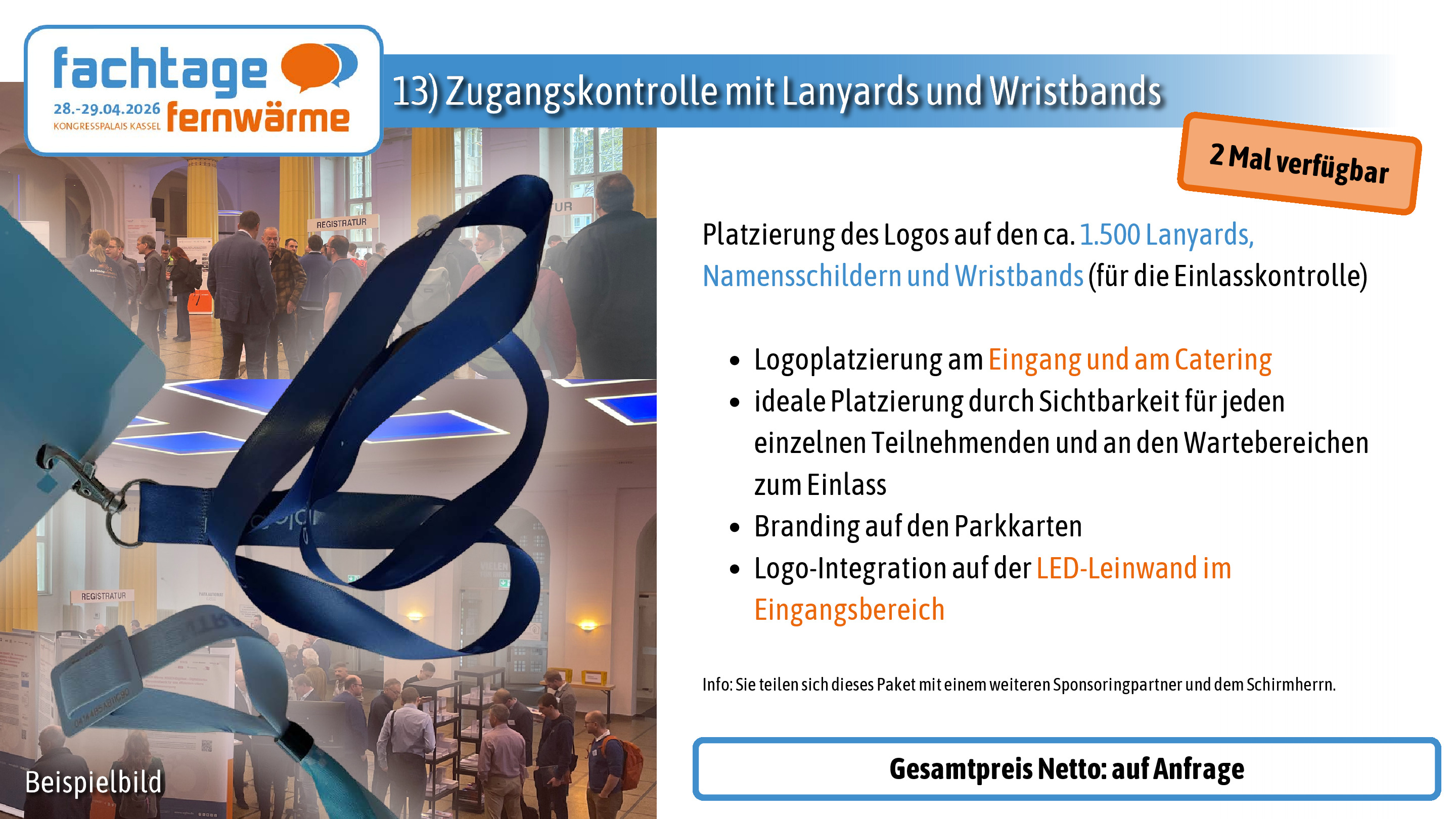13) Zugangskontrolle mit gebrandeten Teilnehmenden-Lanyards und Badges